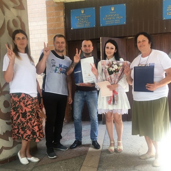 Свадебный подарок от боровского штаба политсилы стал приятной неожиданностью для Александра Мохно и Людмилы Горенко, которые поженились 21 июля.