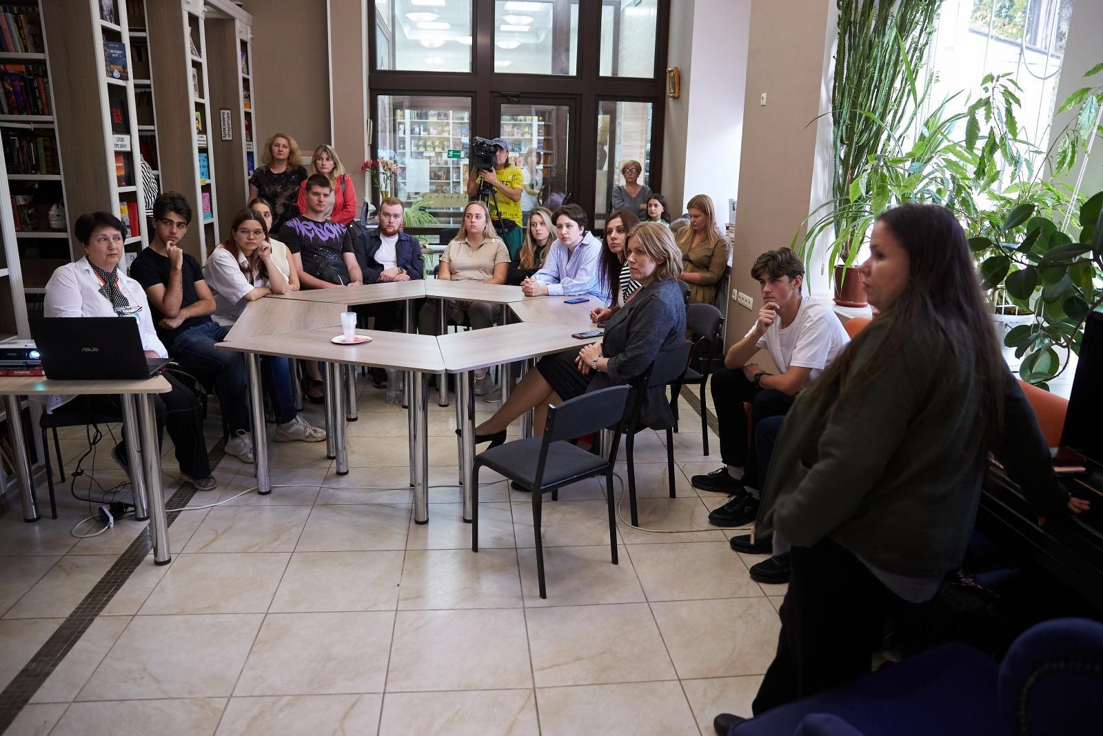 Директор централізованої бібліотечної системи Холодногірського району Харкова Ірина Крутько провела екскурсію для молоді, розповівши історію місця, де всі зібралися. Вона зазначила, що такі зустріч вкрай важливі, адже є основою живого спілкування.