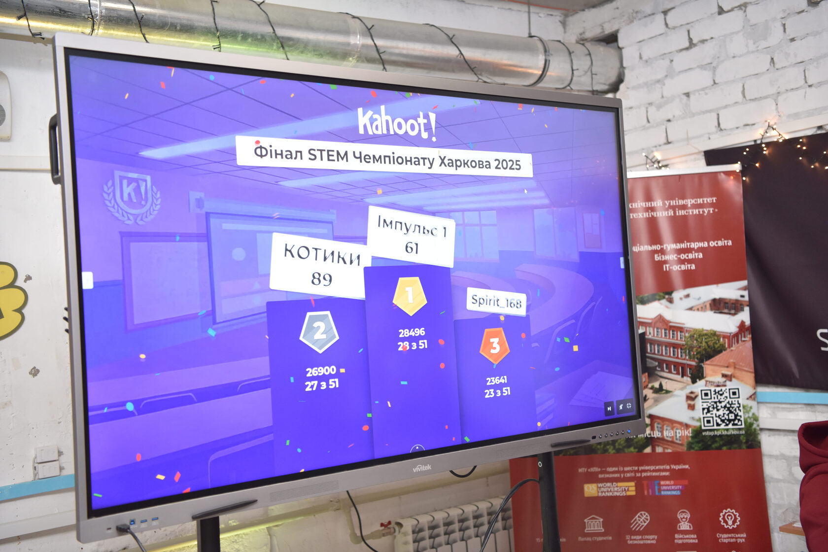 Фінал пройшов у форматі інтерактивної Kahoot-вікторини. Школярі відповідали на запитання з хімії, фізики, математики, IT, а також на блок про Харків і його наукові досягнення. Окрему частину вікторини для дітей провели депутати Харківської районної ради від фракції «Успішний Харків» Максим Геков і Карина Положій.