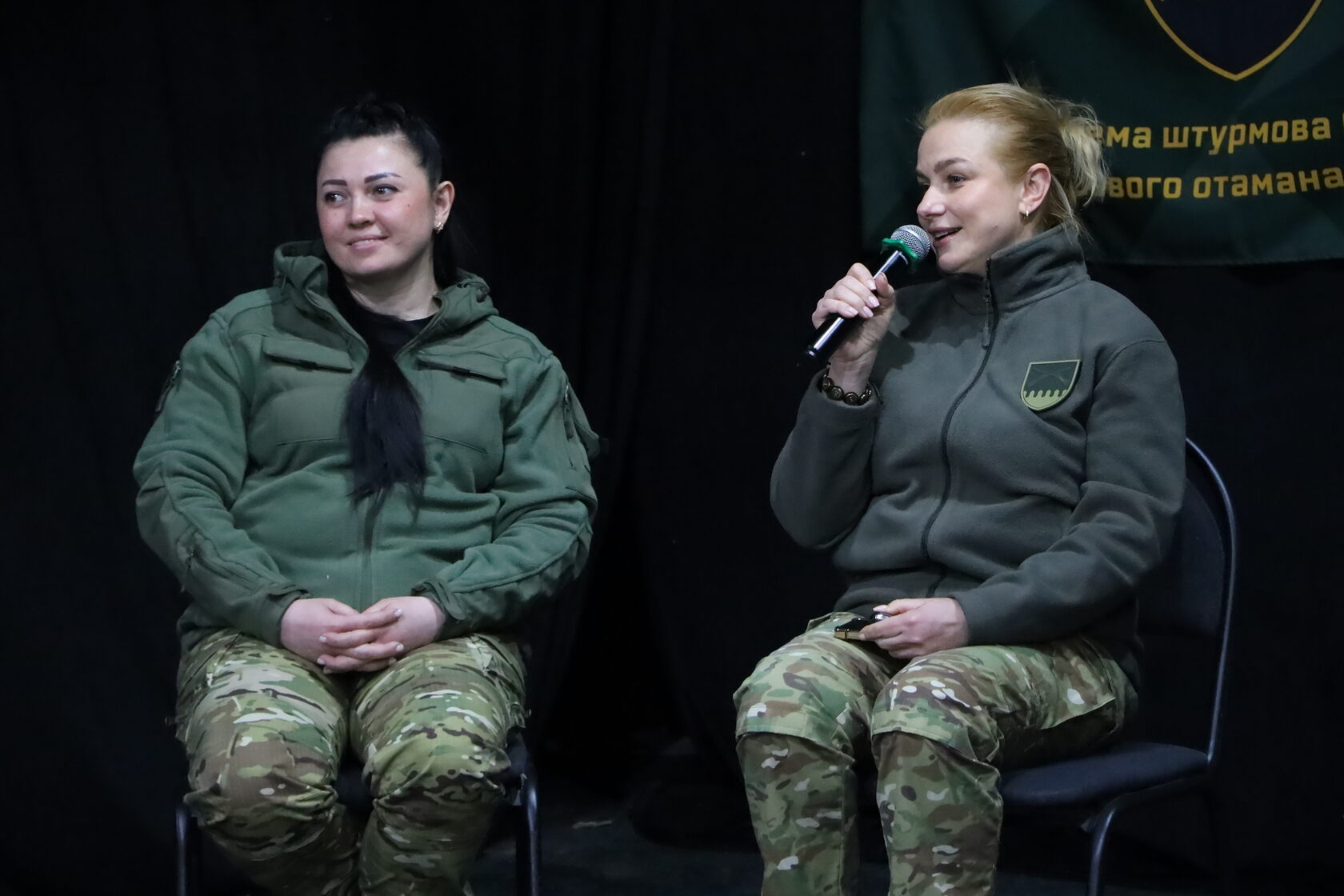 До заходу долучилася молодь «Успішного Харкова». Військовослужбовиці 92-ї окремої штурмової бригади ім. кошового отамана Івана Сірка та 15-ї бригади Національної гвардії України «Кара-Даг» ділилися особистими історіями про службу й родини, говорили про мотивацію, втому та що робитимуть після Перемоги.