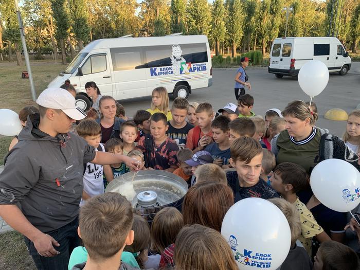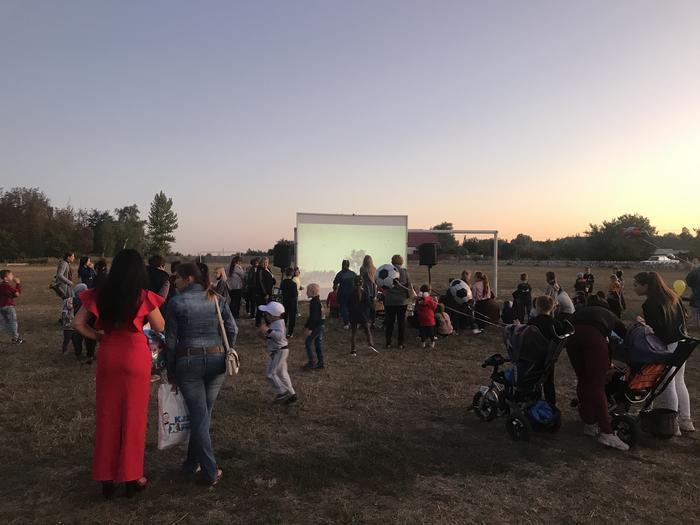 Перед кінопоказом для місцевих жителів Слобожанського влаштували свято з аніматорами, конкурсами та виступами артистів. На захід запросили і мешканців сіл, що розташовані поруч.